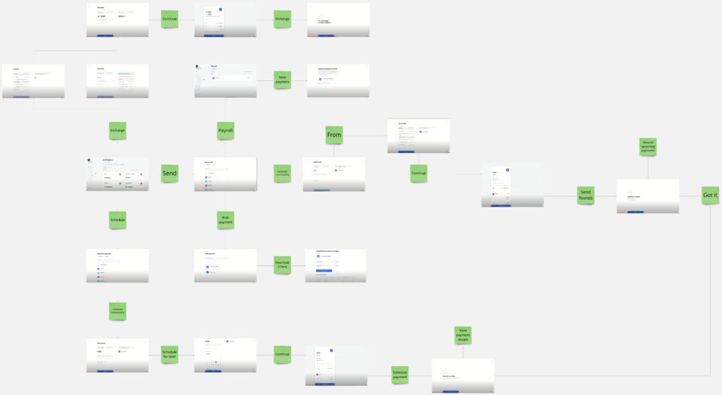 I gathered quantitative data from the big data team – user flow, conversion, transaction time, unusual behavior. I looked for Jira tickets on topics related to the project – tickets from Customer Care, PMs and analysts. I compared the largest competitors in the market – Revolut, Curve, N26, PayPal, Paysend, Wise, Zen.com.